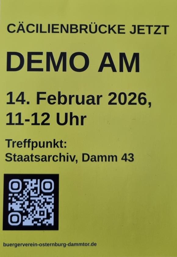 Am Samstag, den 14. Februar fand die Demonstration des Bürgervereins Osternburg unter dem Motto „Cäcilienbrücke jetzt“ statt. Das Ziel: Die Verzögerungen beim Ersatzneubau der Cäcilienbrücke aufzuzeigen. Nach dem Treffen am Staatsarchiv ging es für die ca. 70 Demonstrationsteilnehmenden, begleitet vom Oeins Filmteam über die Behelfsbrücke, zu einem Abschlussgespräch. Hier sind u. a. die Intransparenz zum Planungs- und Umsetzungsstand seitens des Wasser- und Schifffahrtsamt (WSA) thematisiert worden sowie der fehlende sichtbare (Bau-) Fortschritt. Weiterhin sind die vorliegenden Zeitpläne aus 2021 und 2025 des WSA mit dem aktuellen und bekannten Sachstand verglichen worden. Hierbei blieb nur die Erkenntnis, dass zum heutigen Stand die Ankündigungen gemäß der bisherigen Zeitstrahle nicht eingetreten sind. So müsste sich, gemäß des optimierten Zeitstrahls aus 2025, der Ersatzneubau bereits in der baulichen Umsetzung befinden oder zumindest gemäß des ursprünglichen Zeitstrahls aus 2025 das Vergabeverfahren begonnen sein. Beides ist bislang nicht der Fall. Die derzeitige Situation stellt eine erhebliche verkehrliche Belastung dar und führt zu einer angespannten Verkehrslage im Stadtteil Osternburg. Des Weiteren ist der Oldenburger Stadtsüden durch das Fehlen der Brücke von der Oldenburger Innenstadt abgeschnitten. Wir fordern eine Beschleunigung der Baumaßnahme und eine vollumfängliche Informationspolitik des WSA.