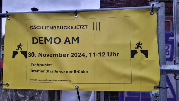 Unter dem Motto „Cäcilienbrücke jetzt!“ gegen das Planungschaos beim Wasserstraßen- und Schifffahrtsamt (WSA) hat der Bürger- und Gartenbauverein Osternburg-Dammtor heute zu einer Demo aufgerufen.