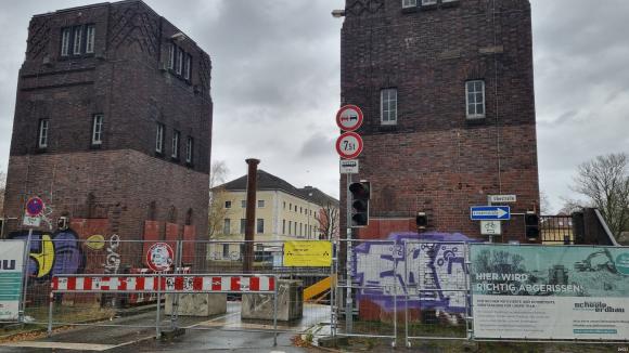 Auf der anderen Seite des Küstenkanals wird die Kanalstraße im Einmündungsbereich Damm von Montag, 27. Januar, bis Freitag, 28. März, für den Kfz-Verkehr gesperrt. Während des Abrisses des am Westfalendamm stehenden Turms muss zudem der Kreuzungsbereich Westfalendamm/Damm/Kanalstraße von Freitag, 14. Februar, 18 Uhr, bis Sonntag, 16. Februar, 24 Uhr, voll gesperrt werden. Eine Umleitung wird eingerichtet und ausgeschildert. Zu Fuß kann die Arbeitsstelle laut Stadt passiert werden.